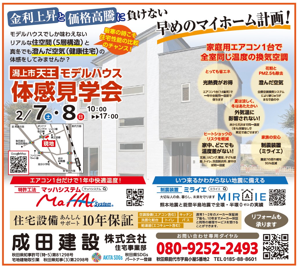 2月7日(土)・8日(日)  体感見学会 in 潟上モデルハウス